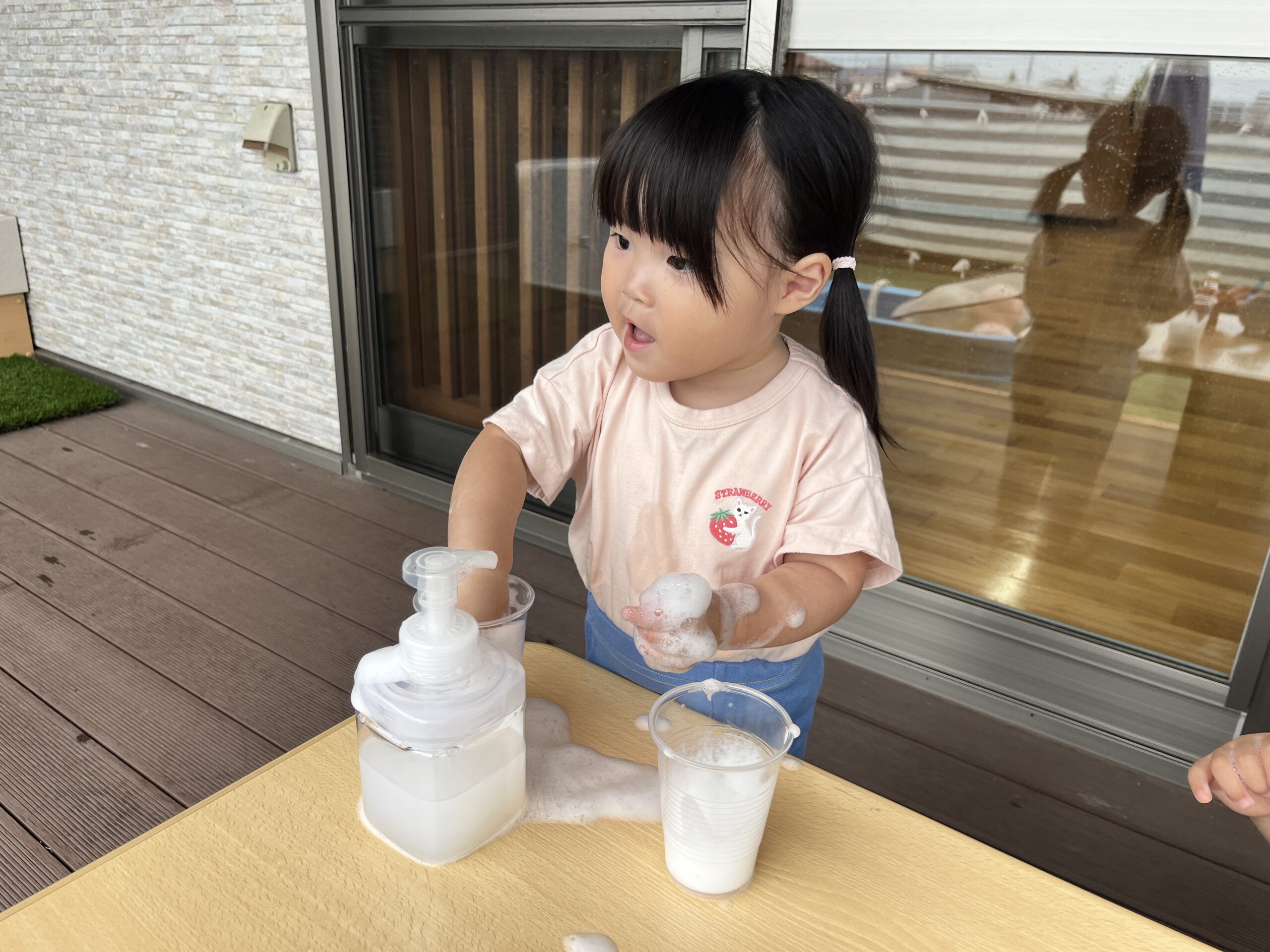 シャボン玉がお顔でパチンッ😉「きゃっ💕」
