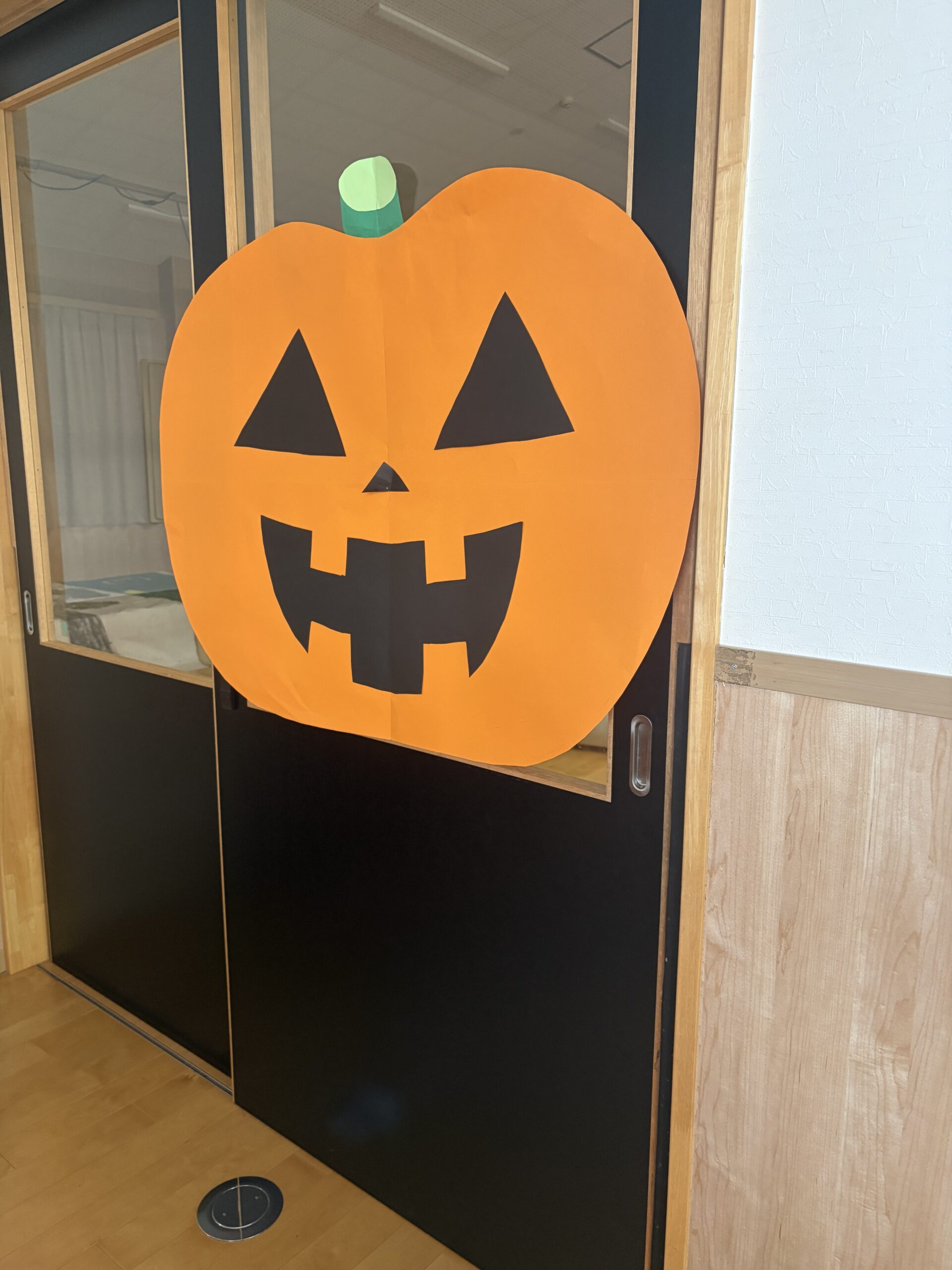 あれれれぇ💦扉の前にこんなに大きなジャック・オー・ランタンが!!