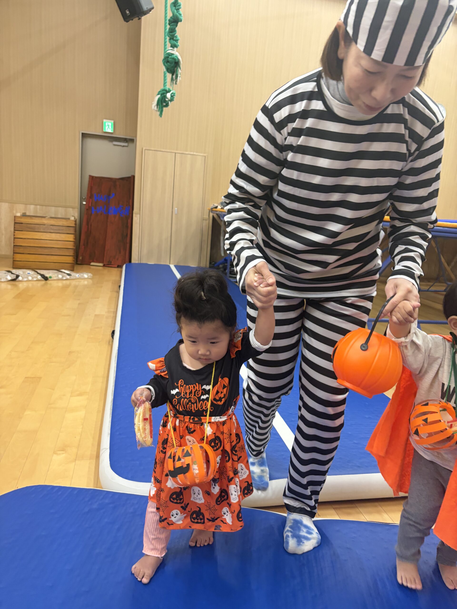 先生と手を繋いで、お菓子をもらいにいくよ(*^▽^*)♪