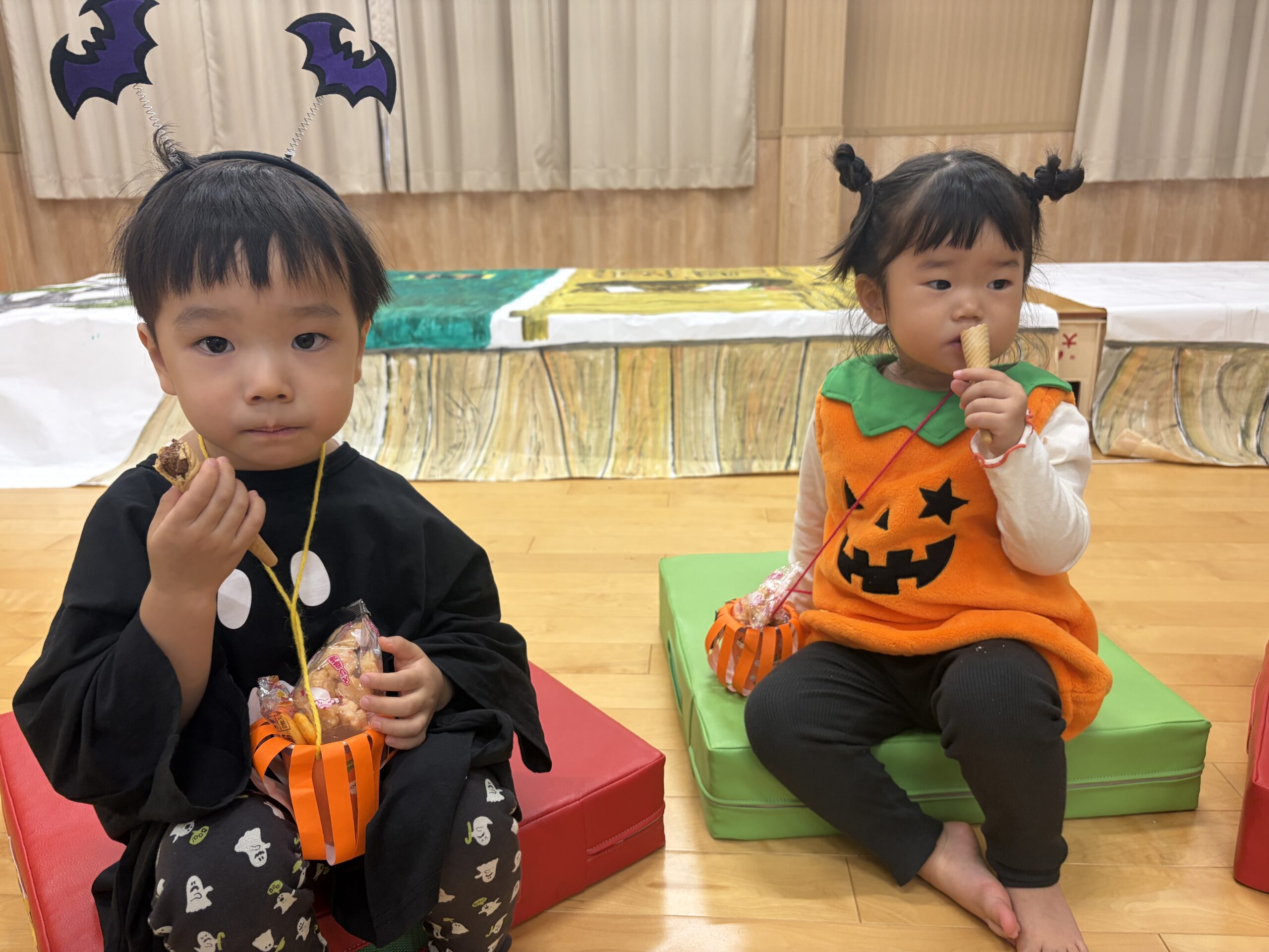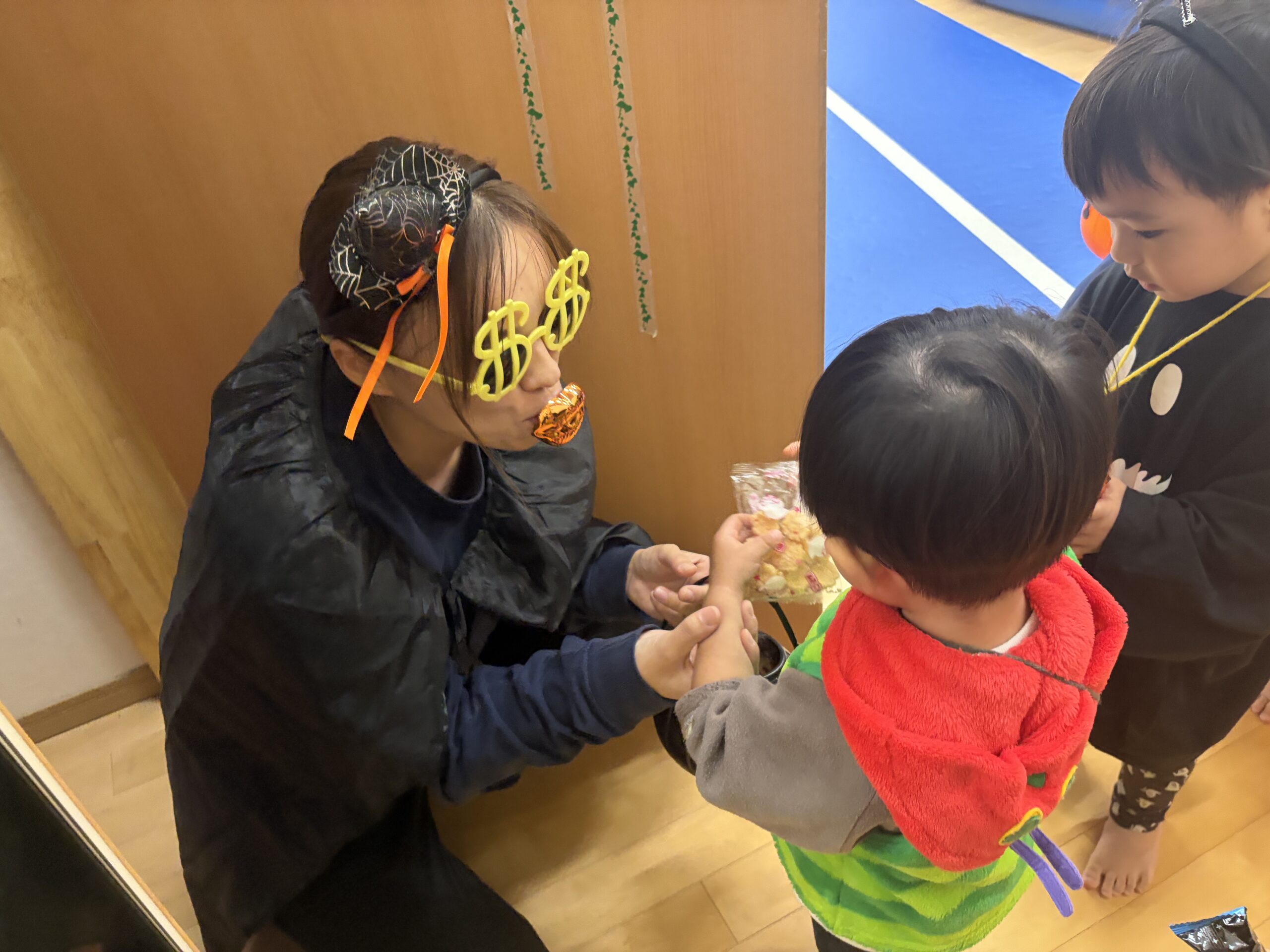 「トリック オア トリート」(お菓子をくれなきゃイタズラしちゃうぞ!)と言う練習もしました🎶
