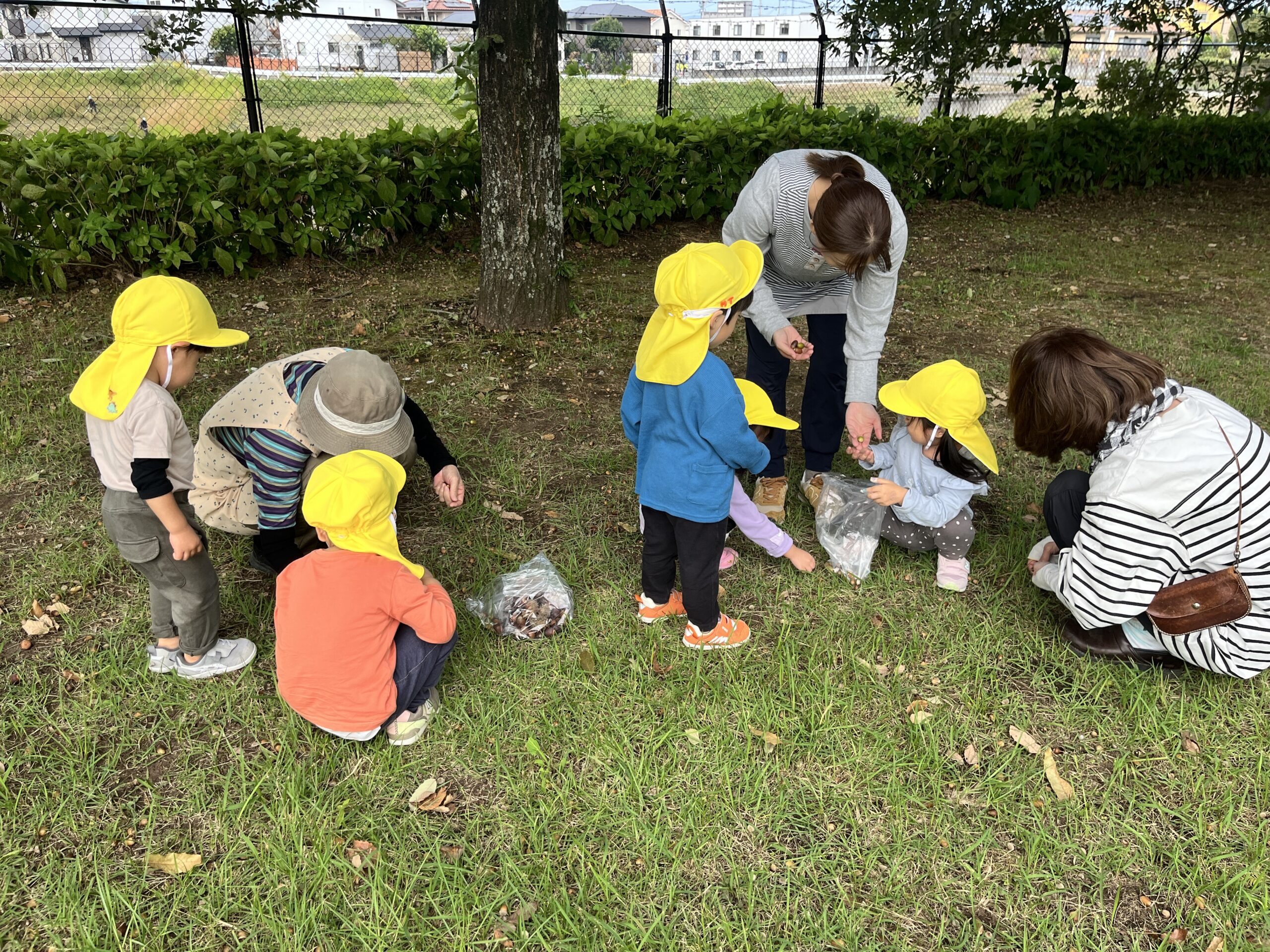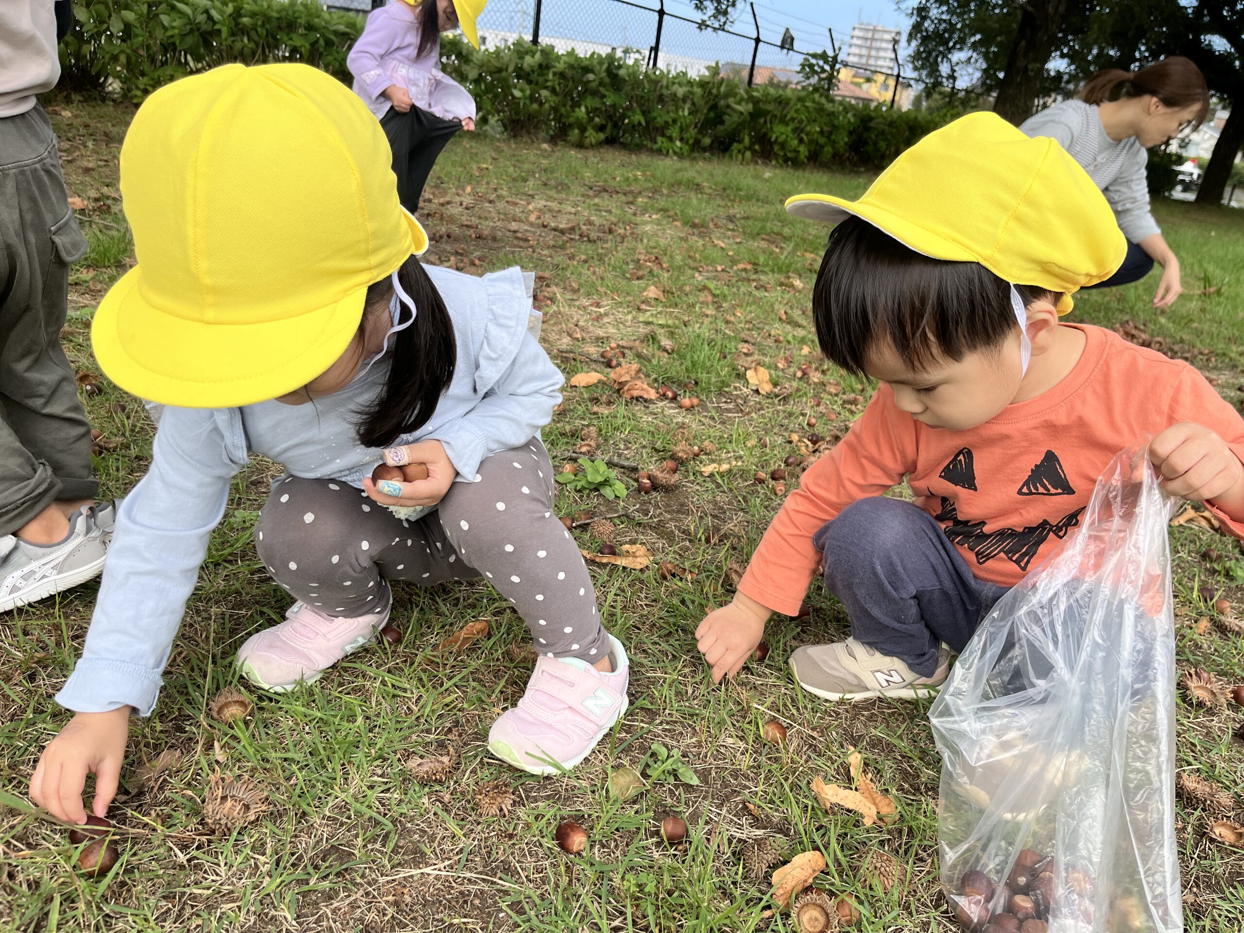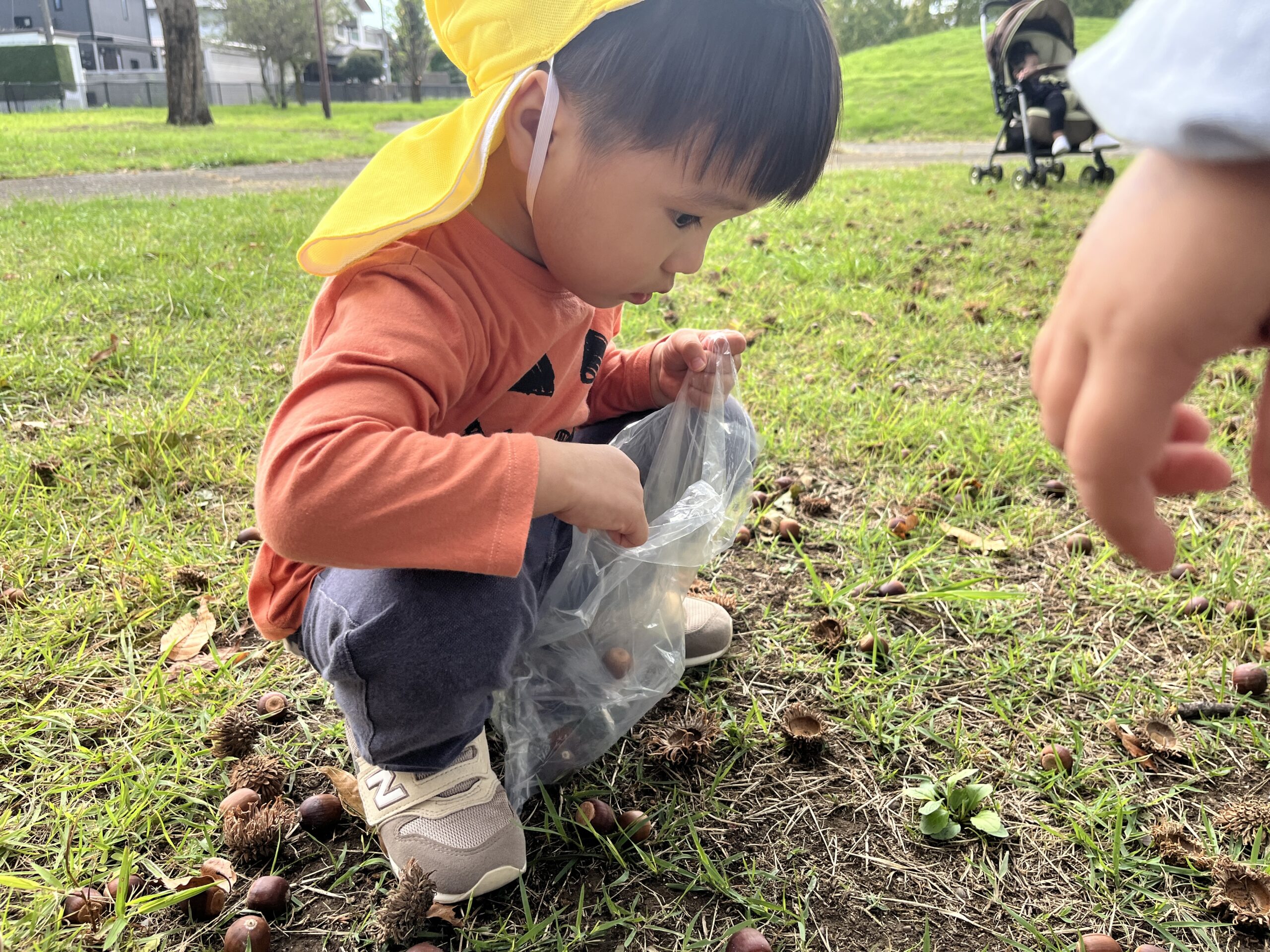次から次へとどんぐりを拾って袋に入れていきます✨✨