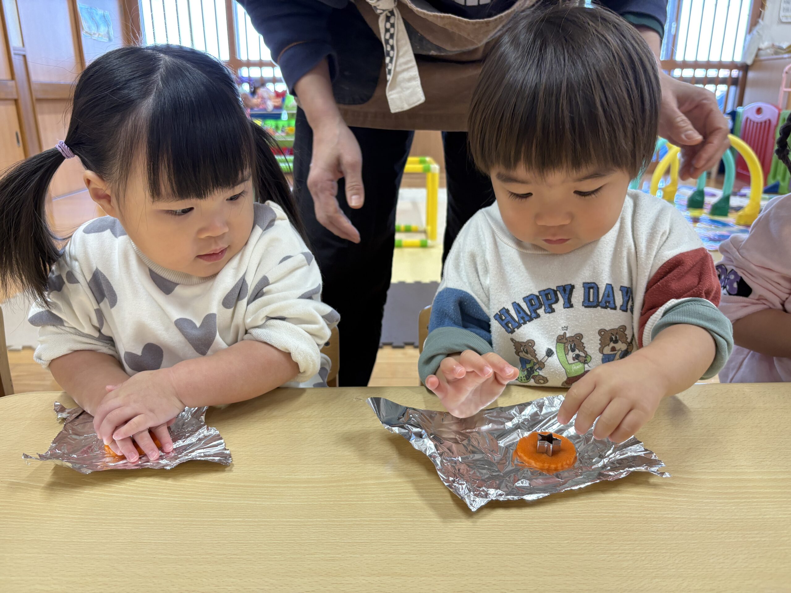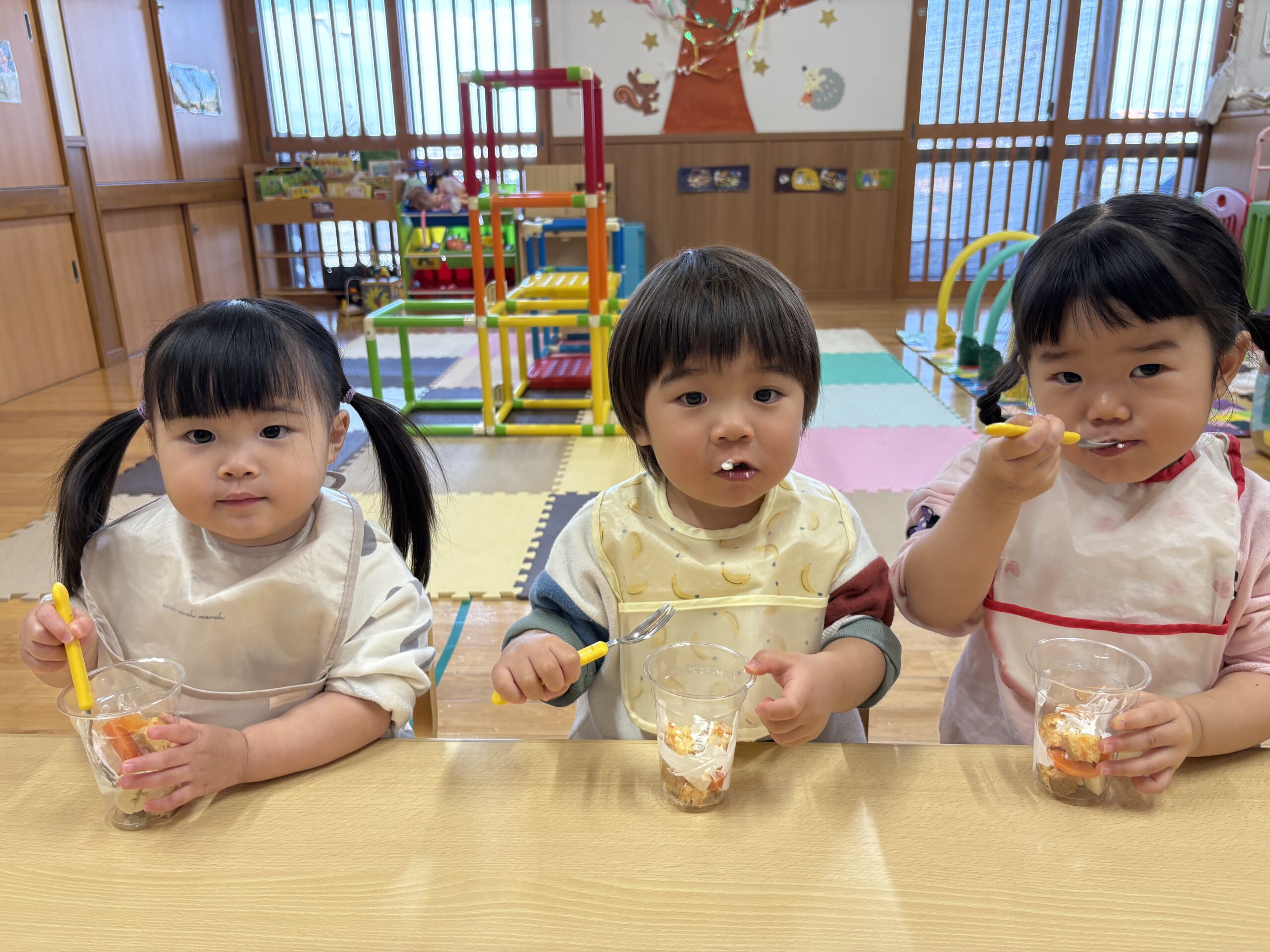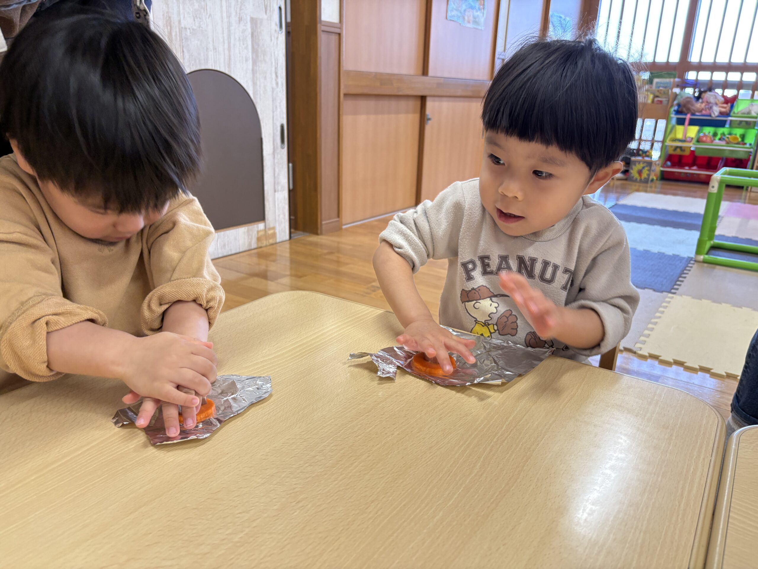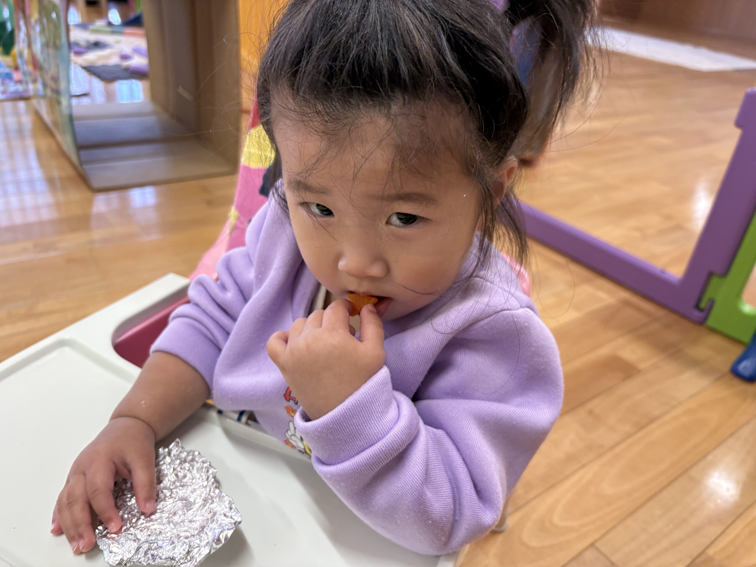 先日、子ども達が収穫してくれた人参を使って🥕食育活動を行いました。