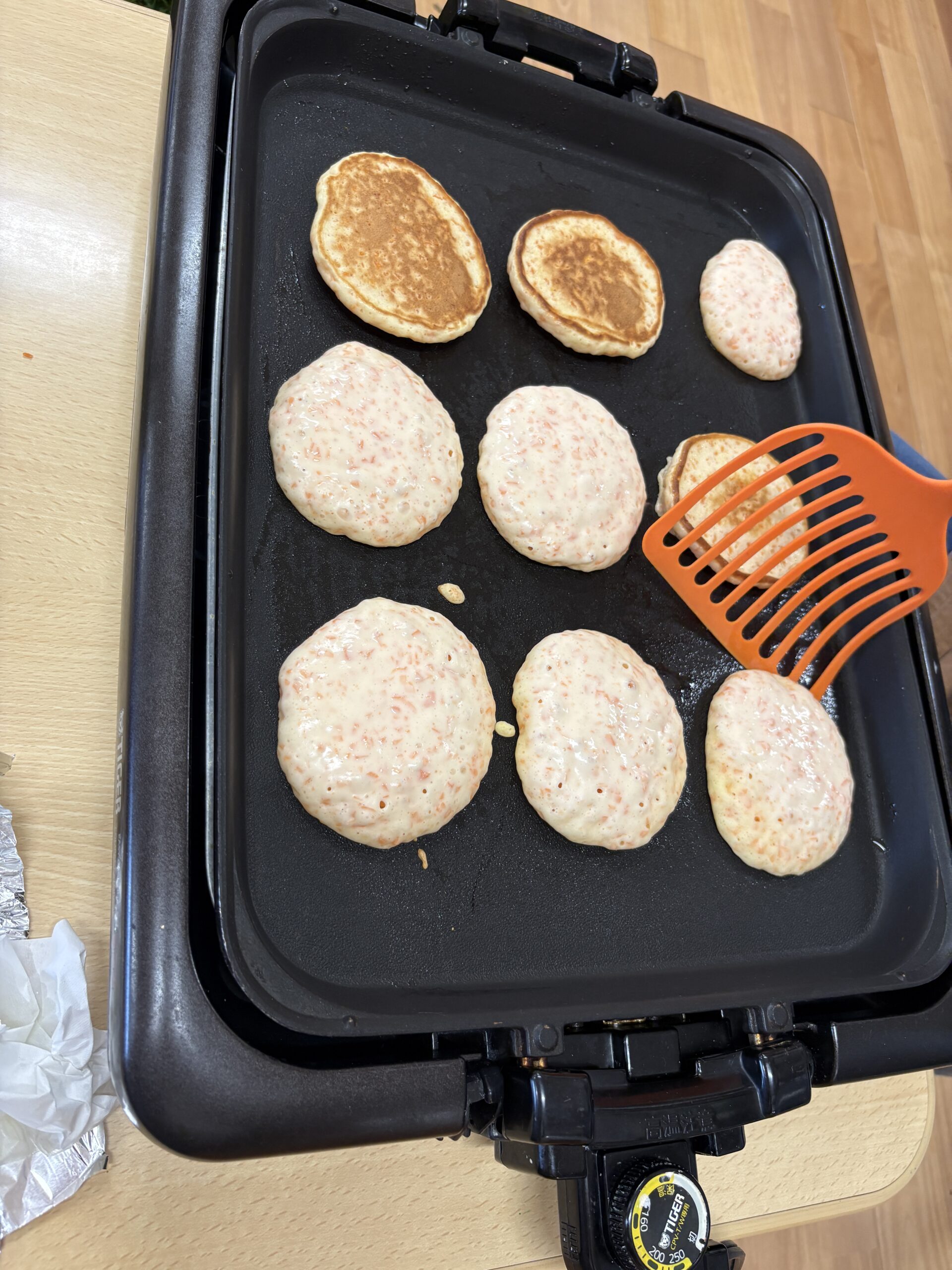 プツプツプツ・・・穴が開いたらひっくり返すタイミング👍
