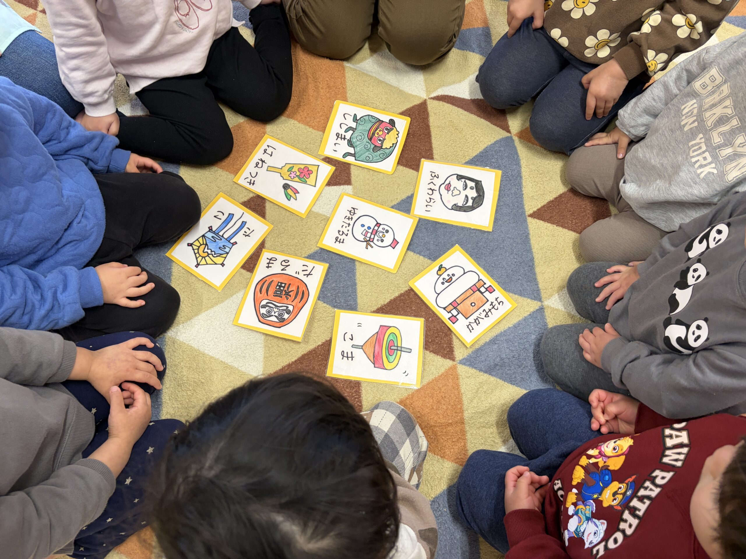 みんなで円になって、カルタを囲み準備万端👌