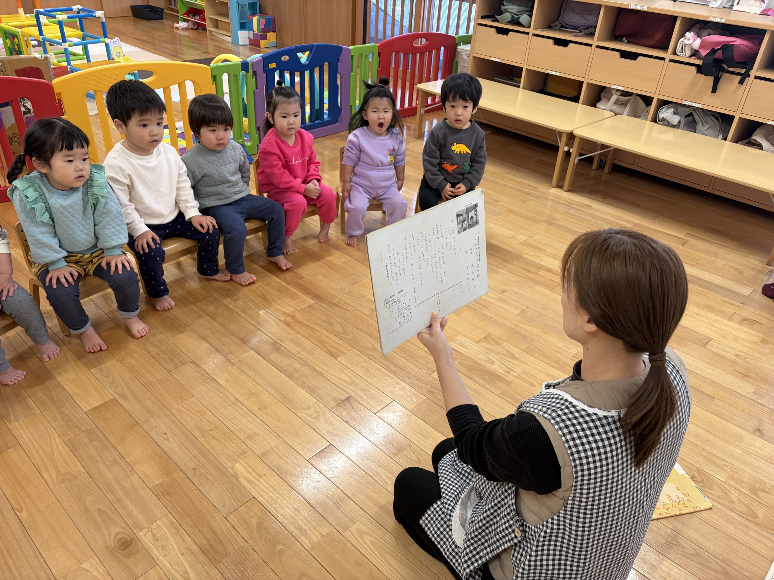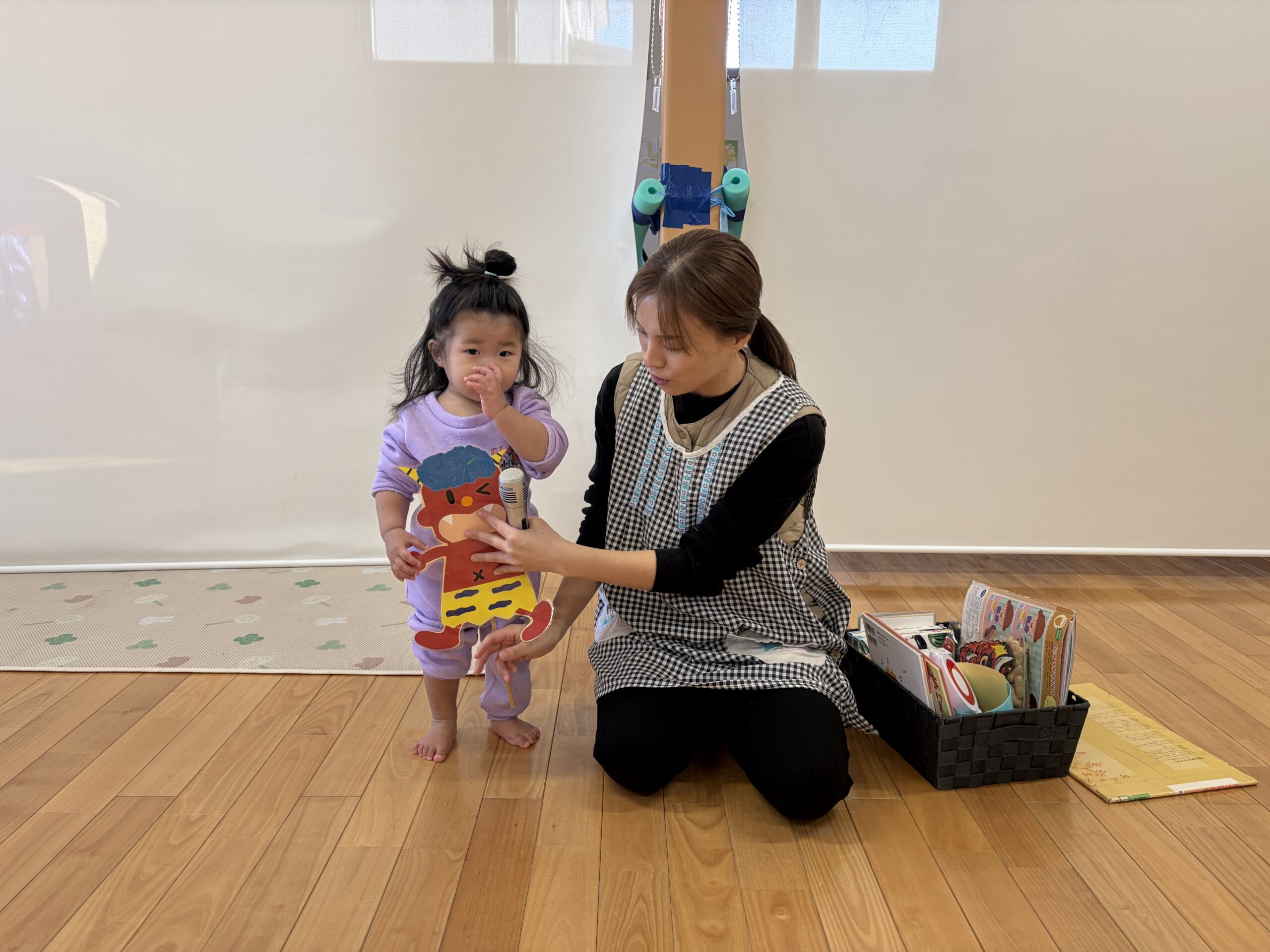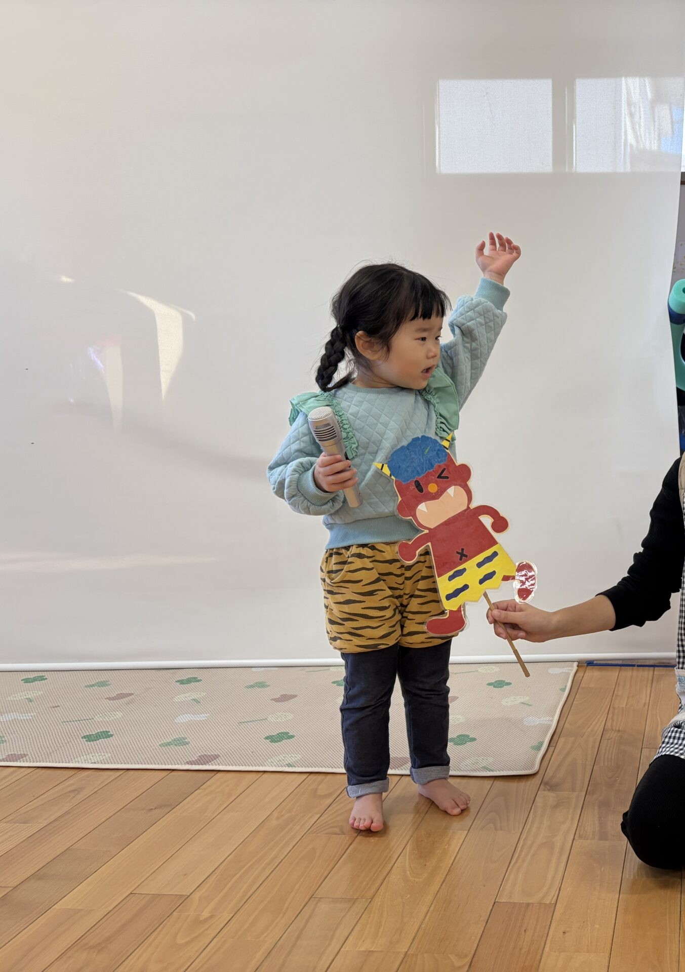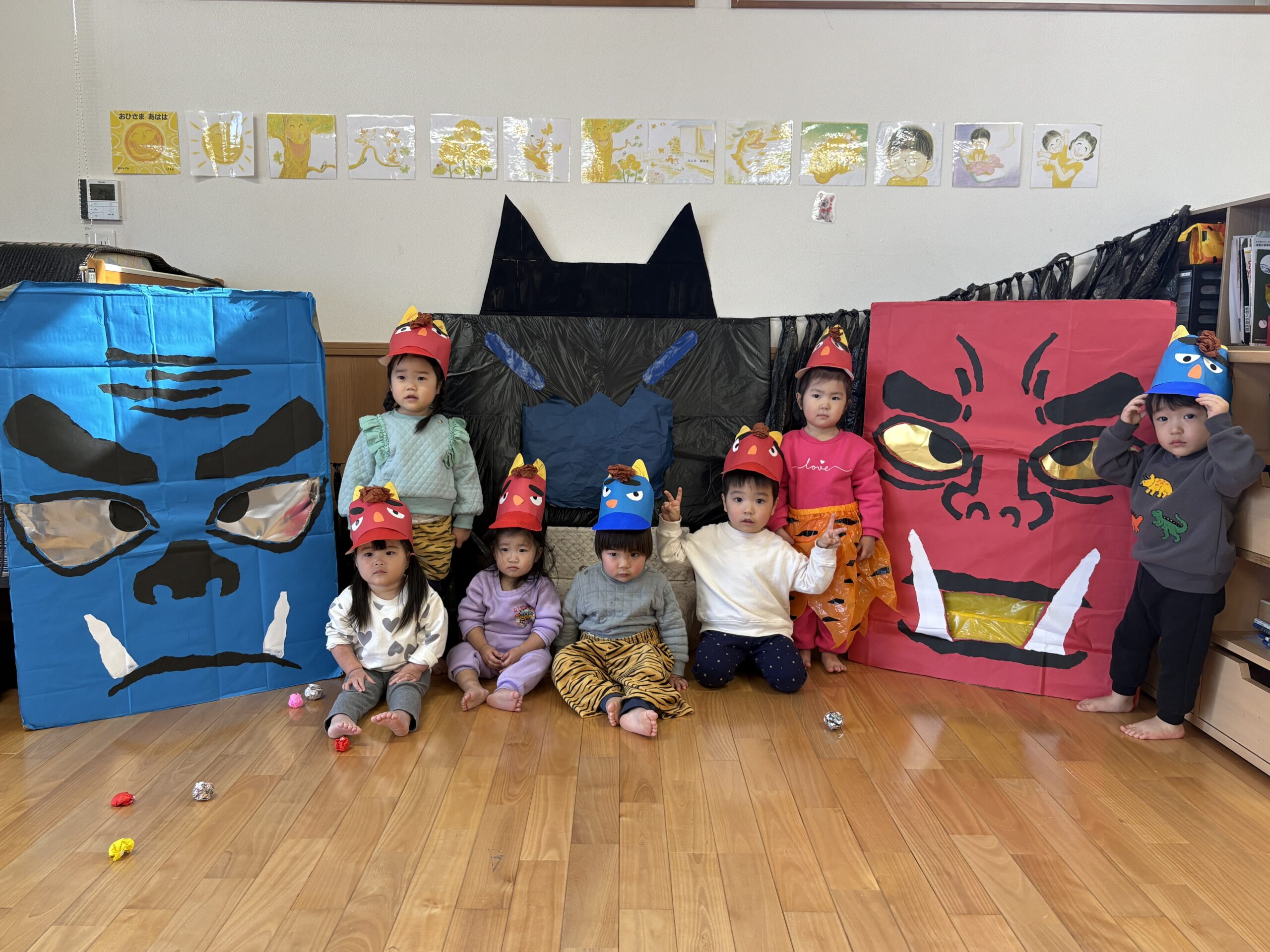 最初に、節分についての話を聞いたり、紙芝居を見ましたよ📖