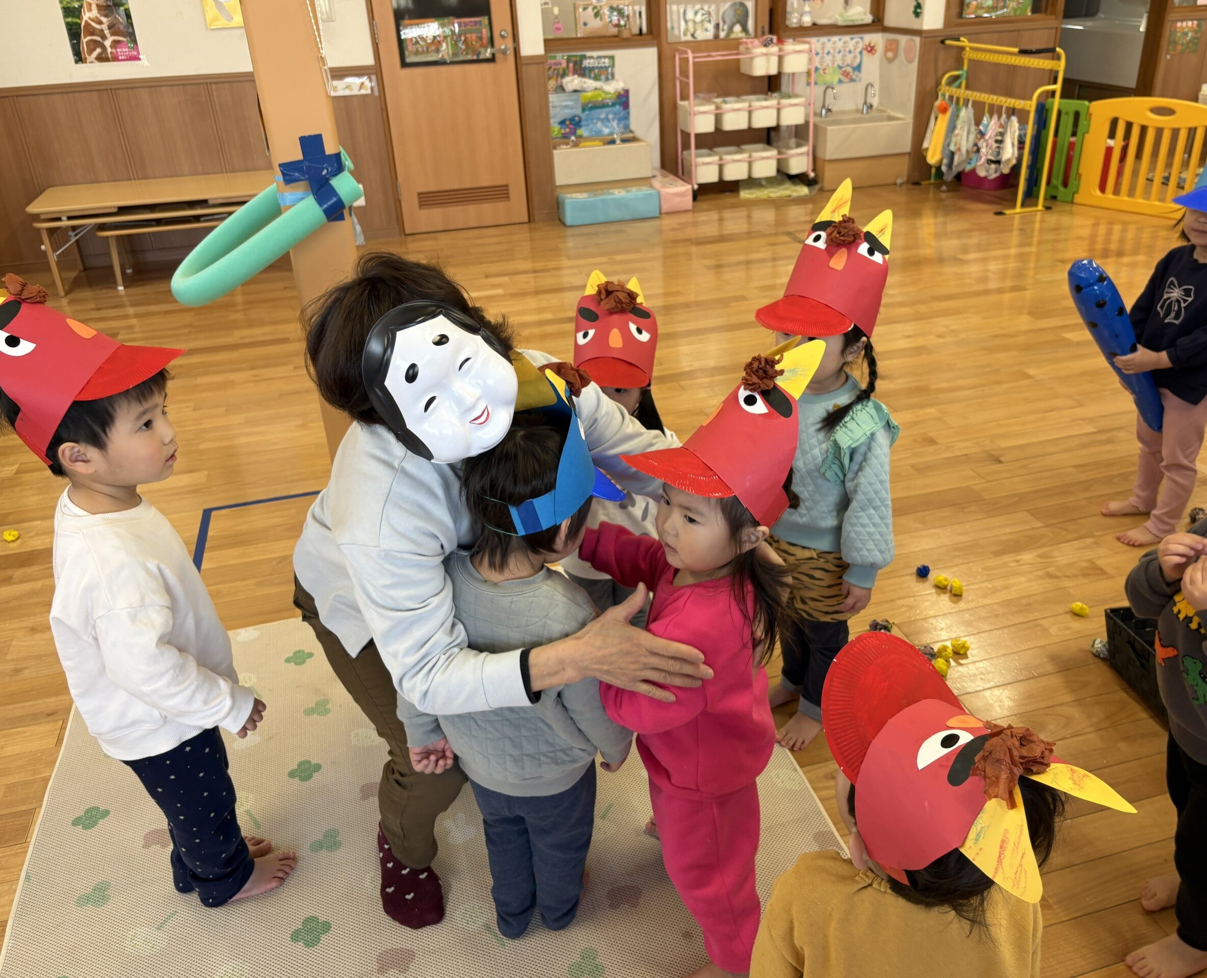 豆まきの後は、「鬼がいなくなったね。」「鬼先生だった~。」と