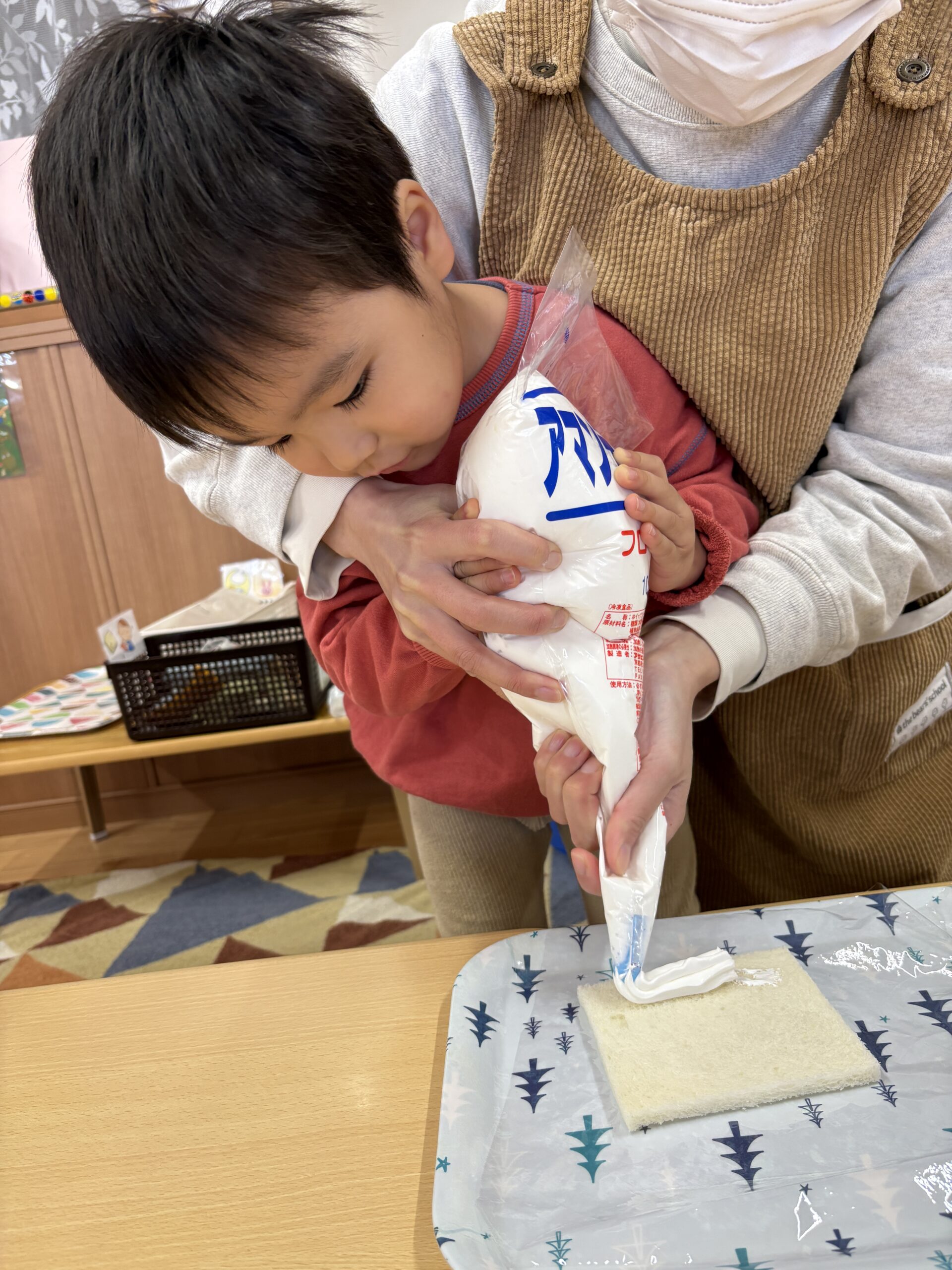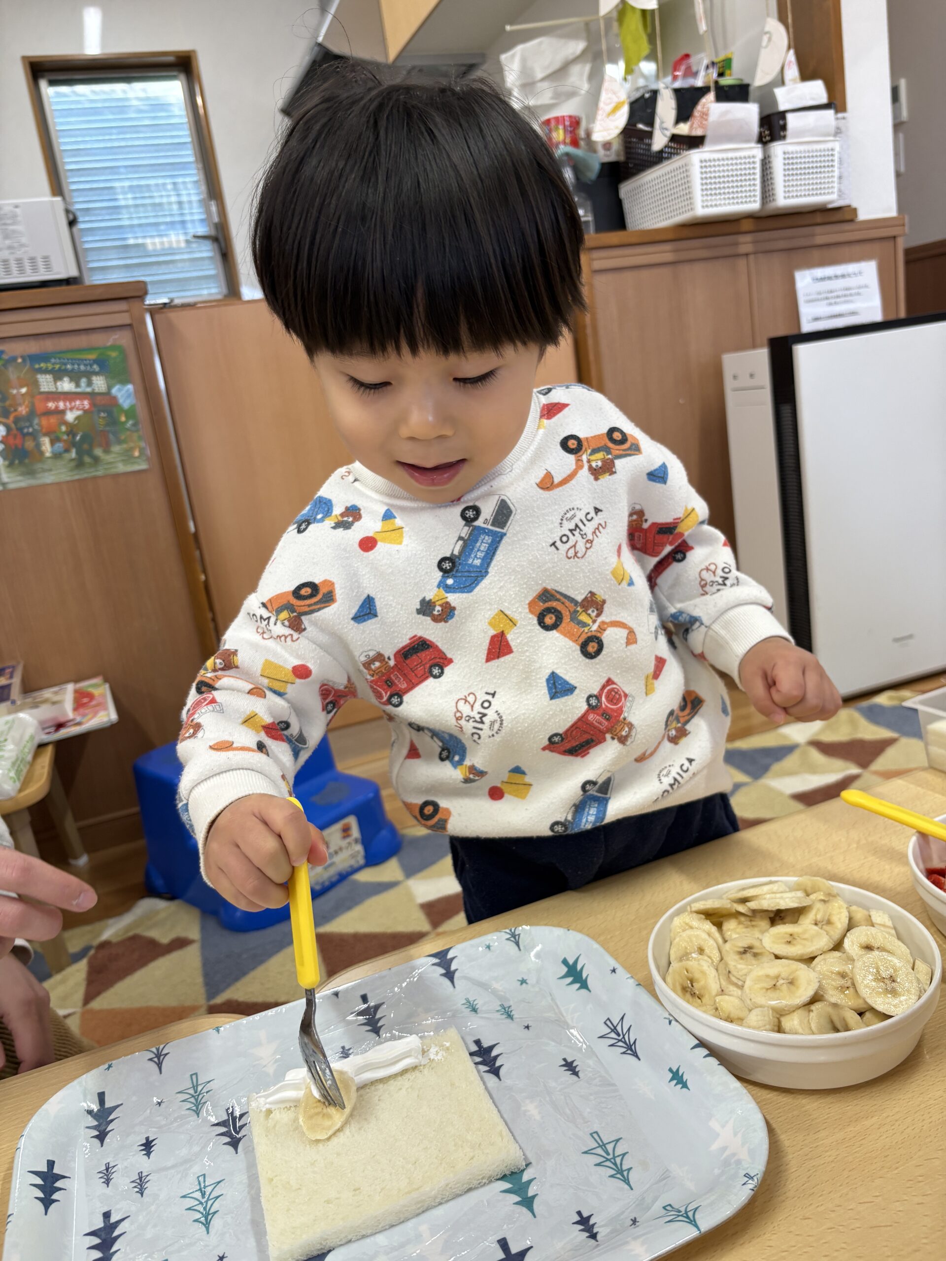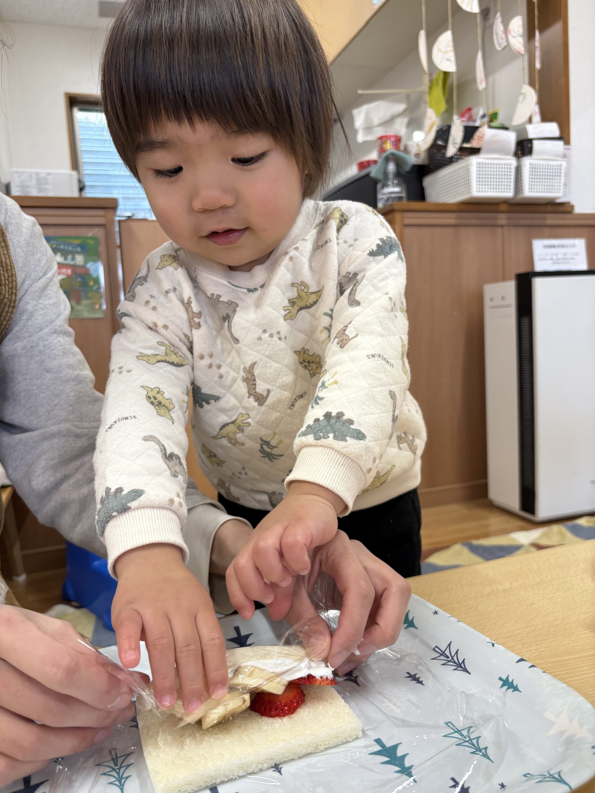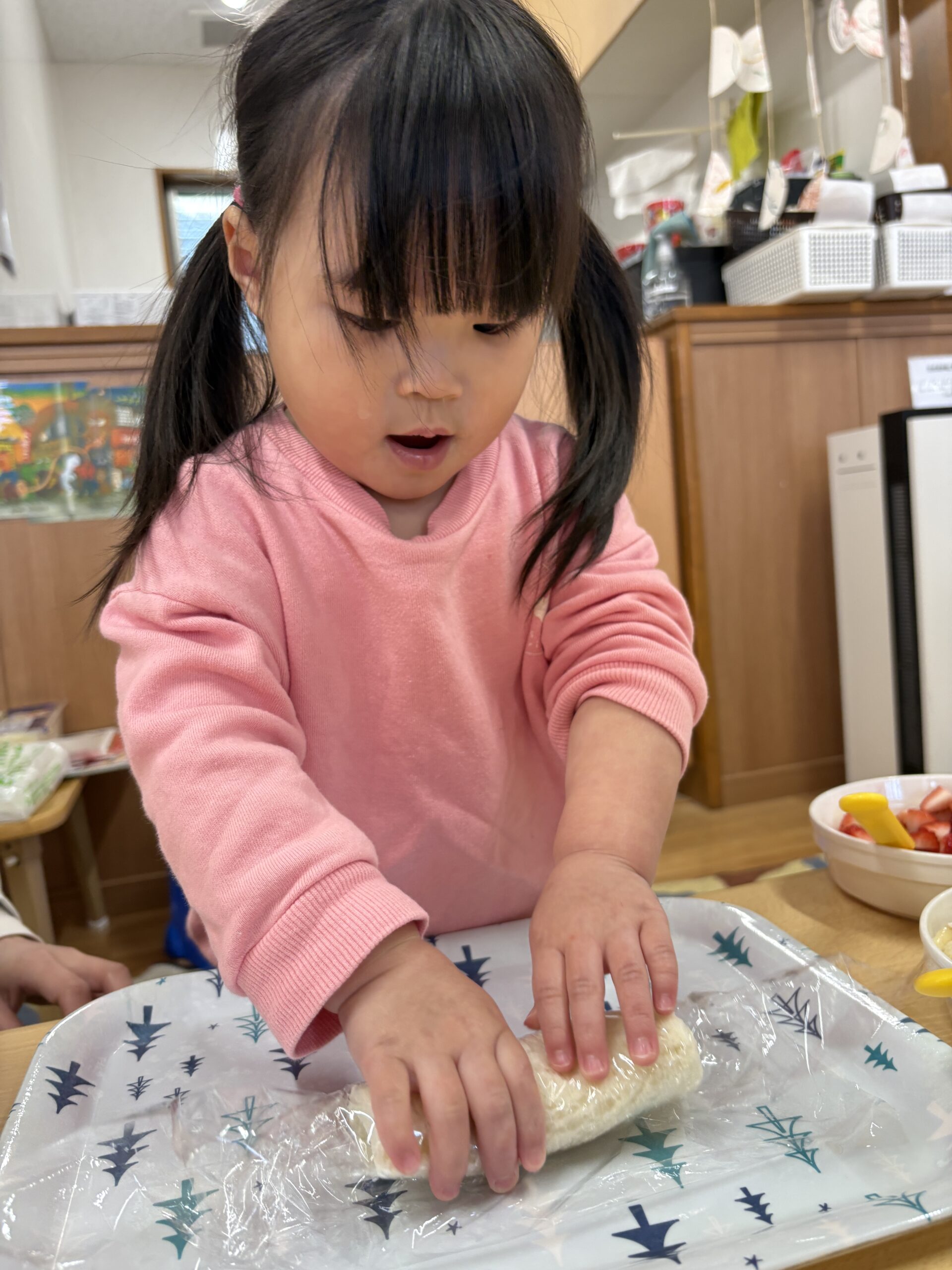 食育活動でフルーツロールサンド作りをしました(*^^)v