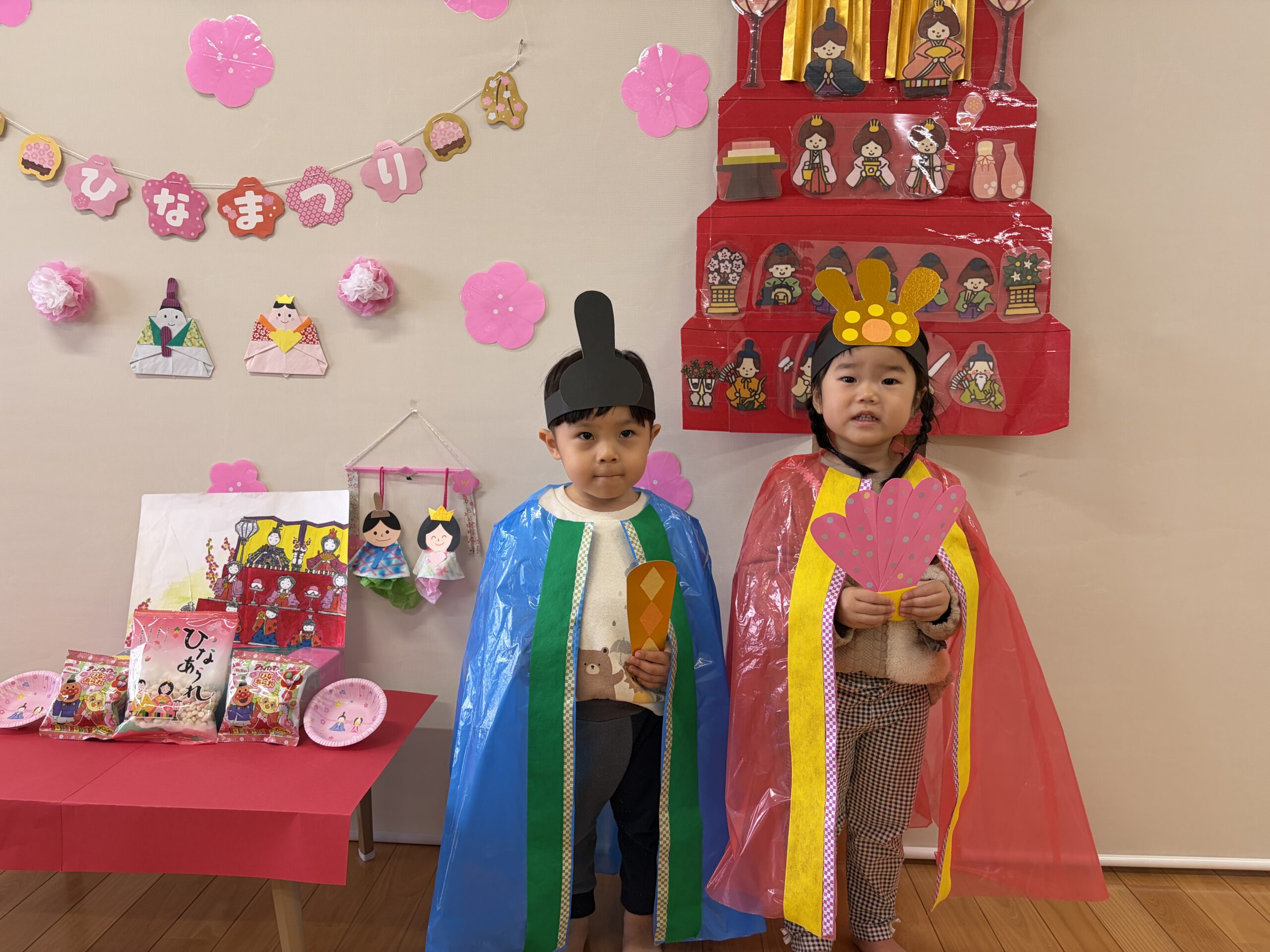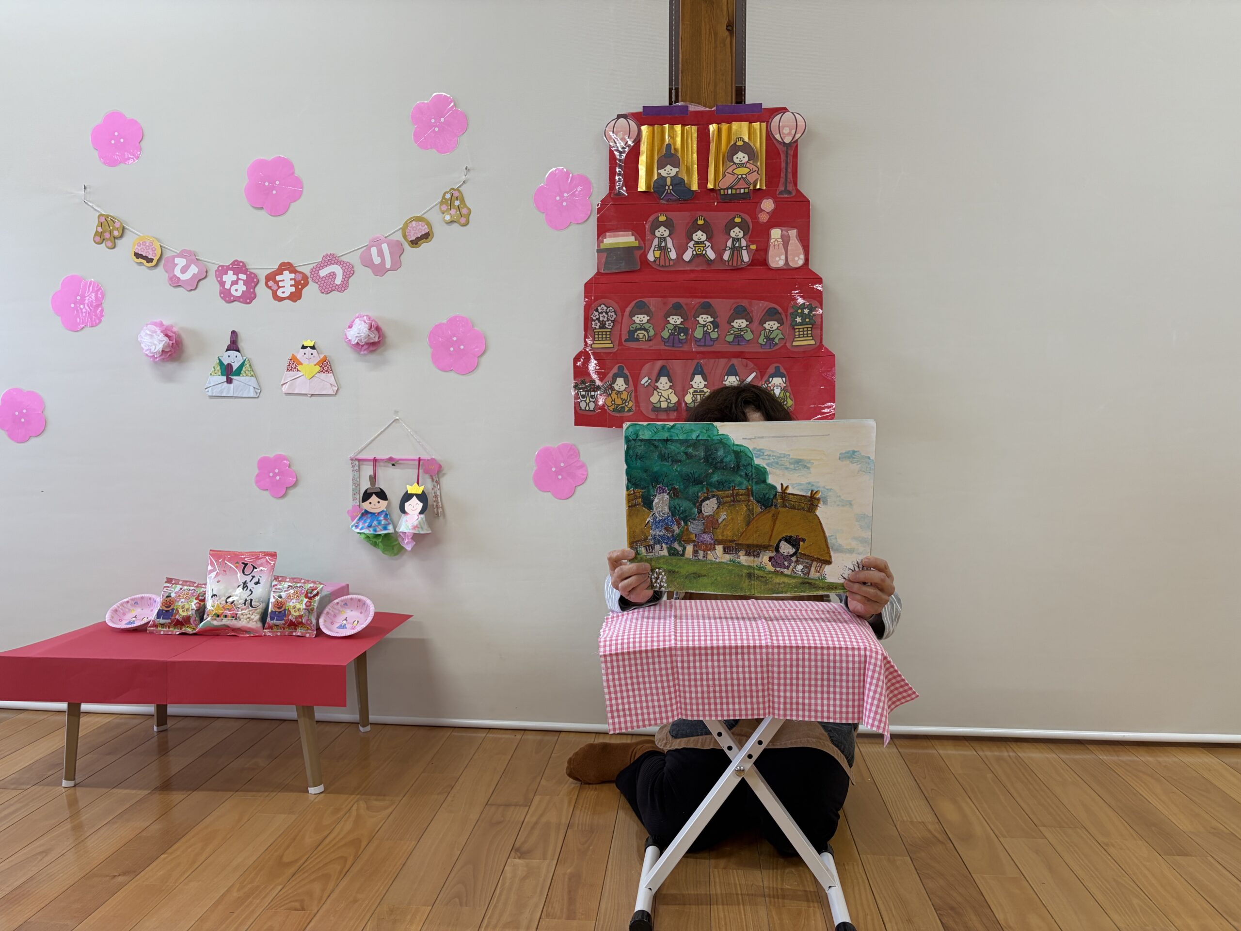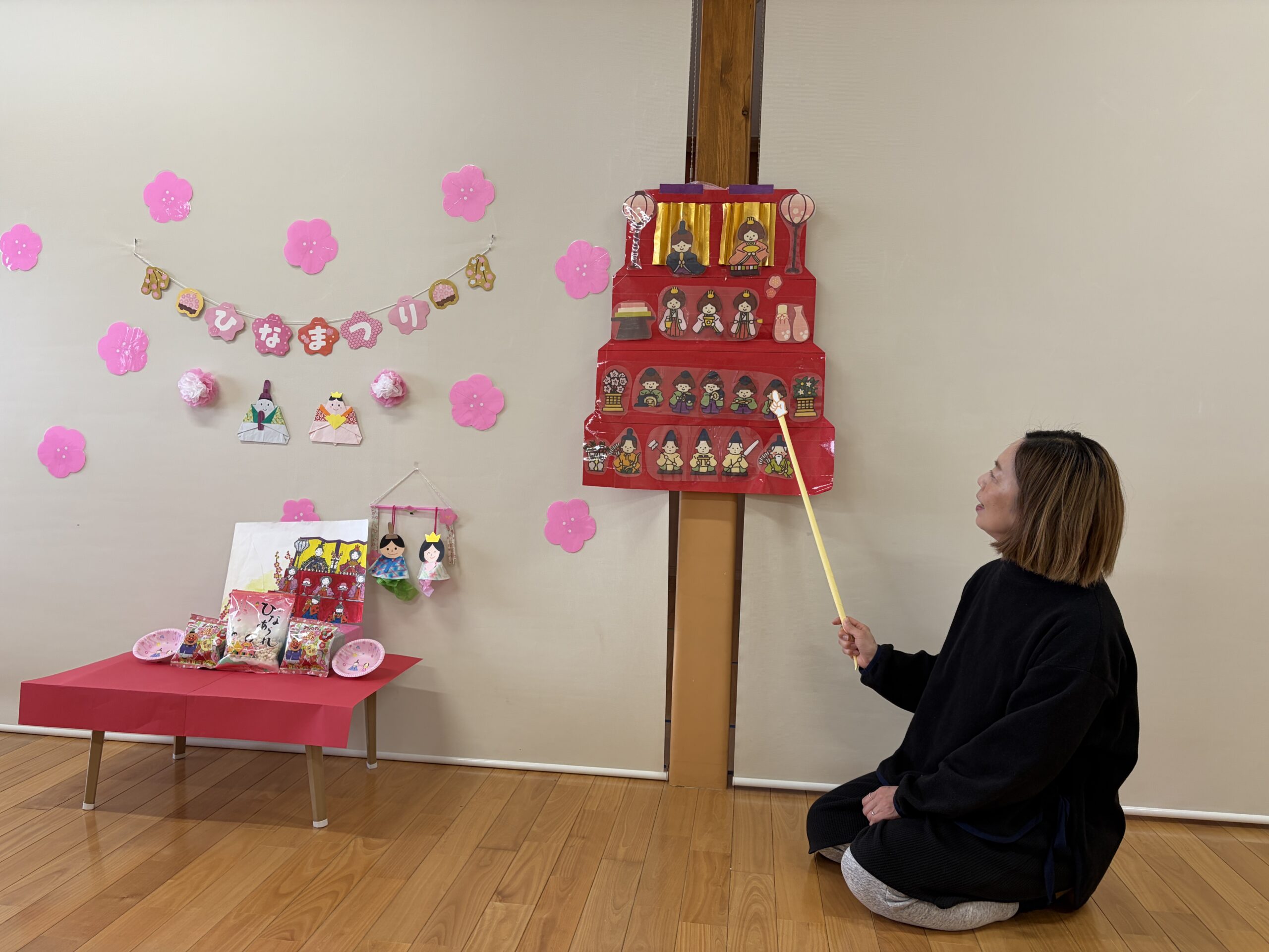 雛飾りを見ながら、みんなで「うれしいひなまつり🎶」を歌いました♪