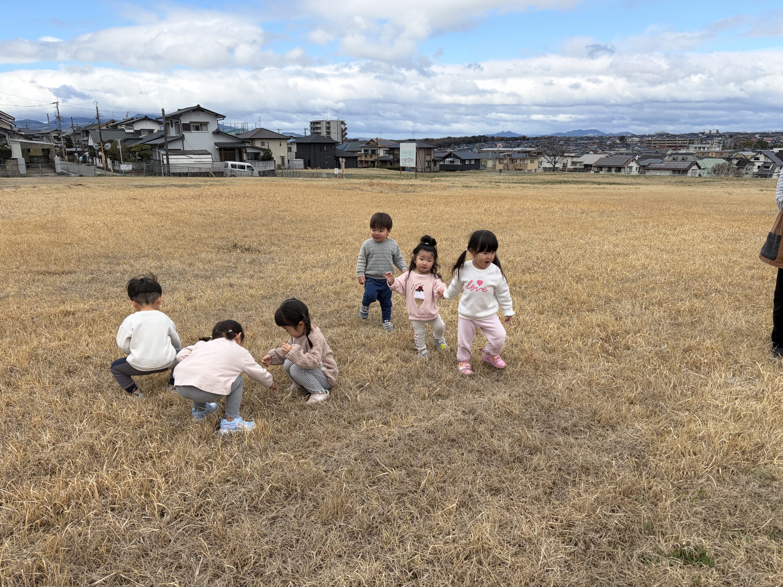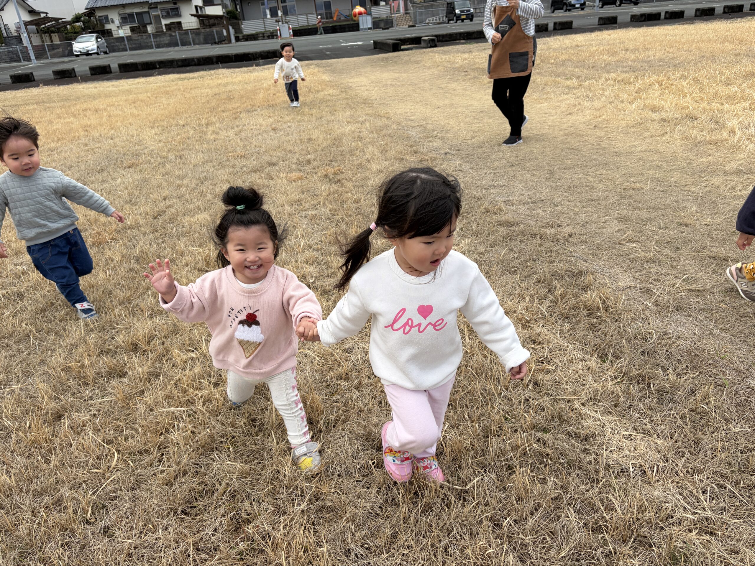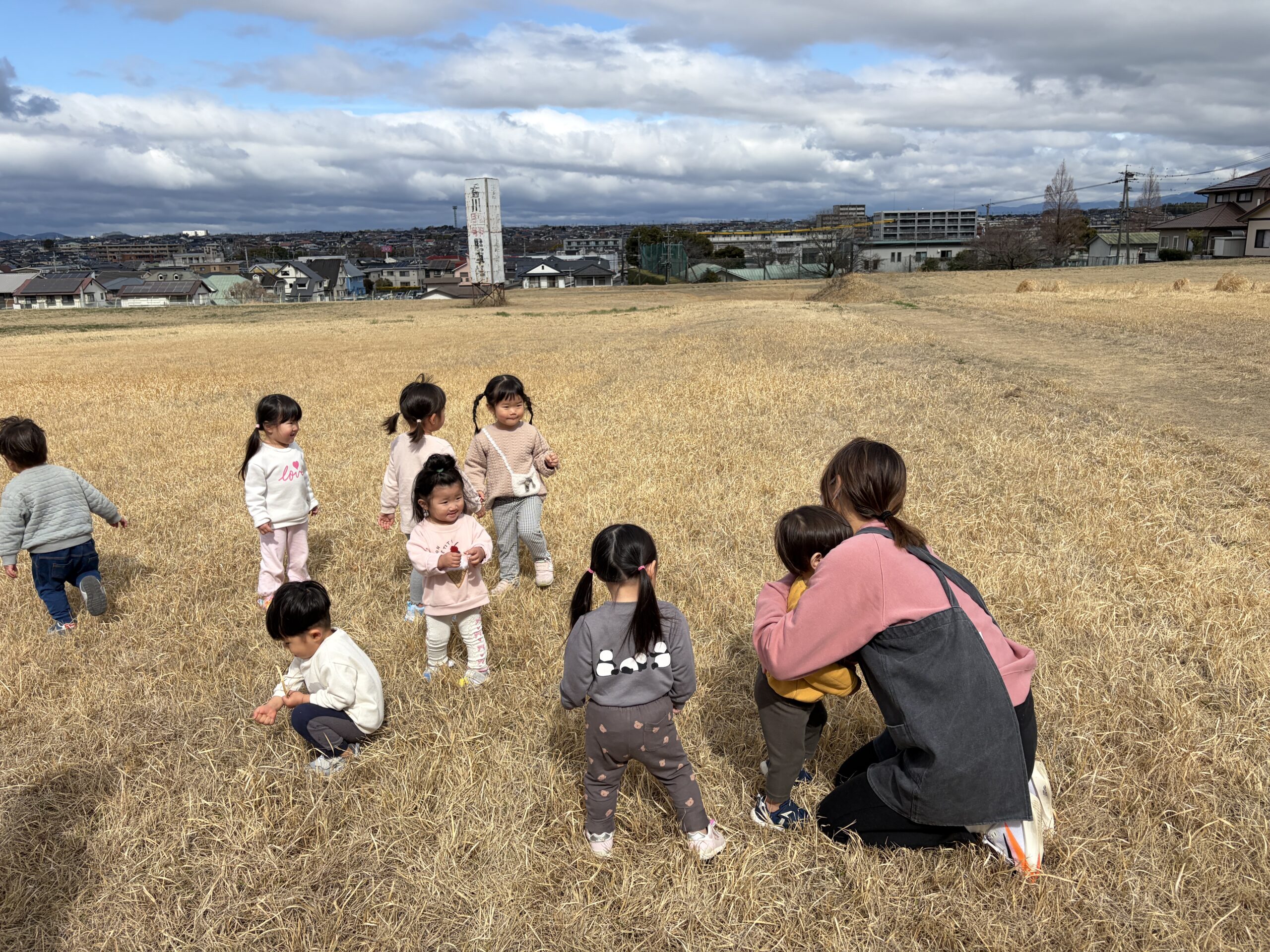 保育園前の草原は見晴らしも良く、子ども達が自然の中でのびのびと遊べる素敵な所です。