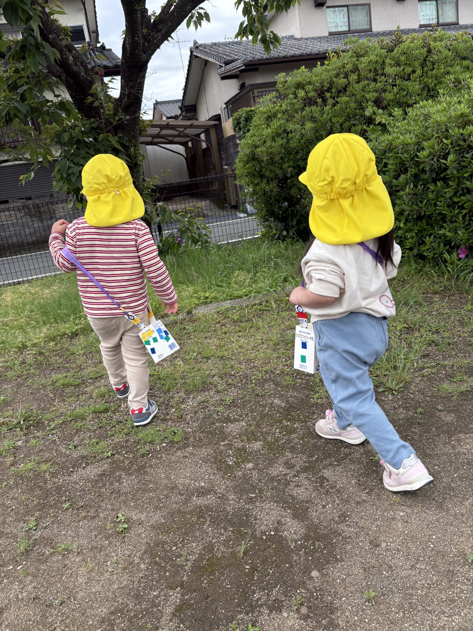 先日作った、お散歩バックを首にかけて公園へ🦋