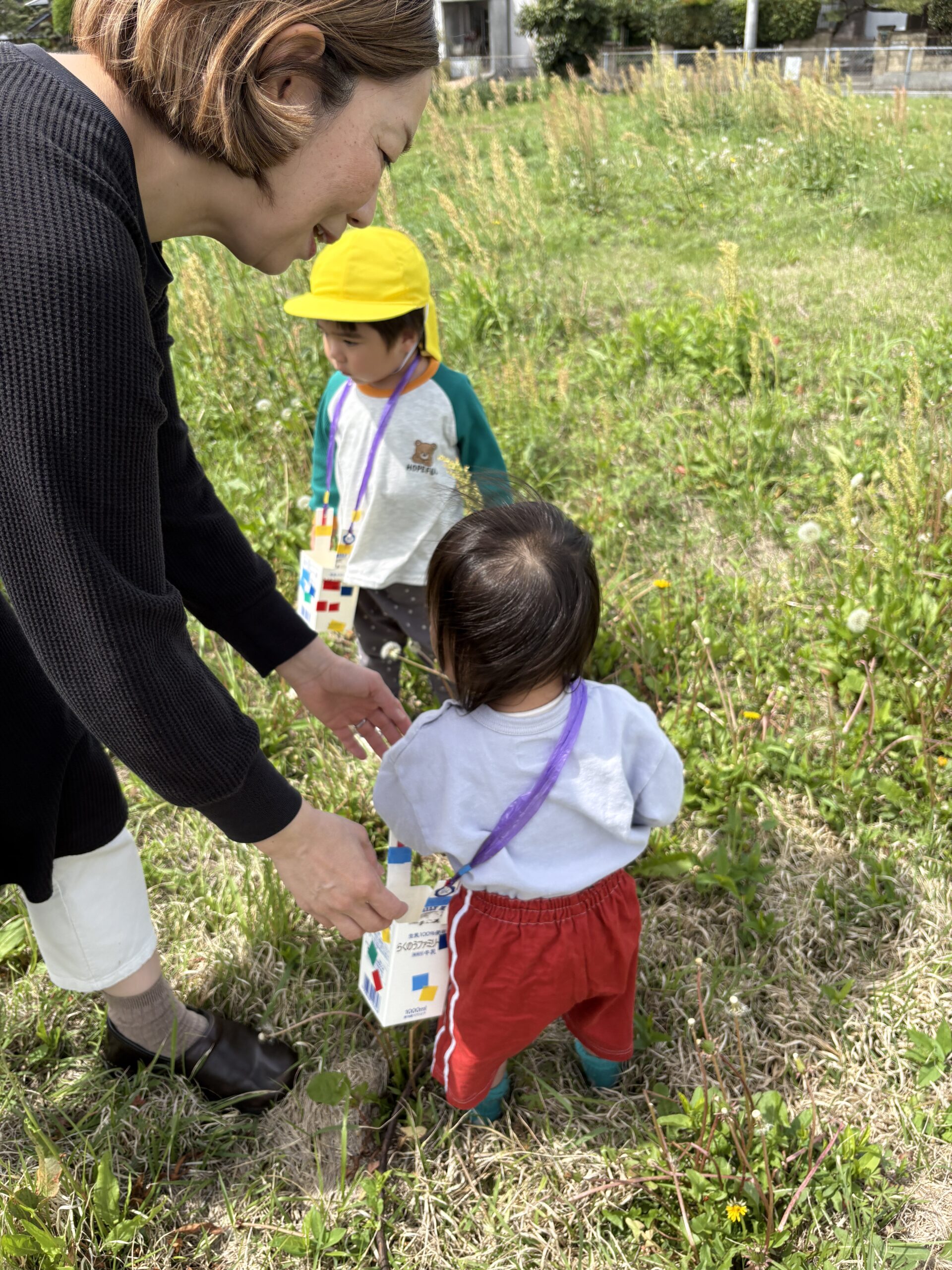 お散歩バックを持って自然探しをする子どもたち(*^▽^*)