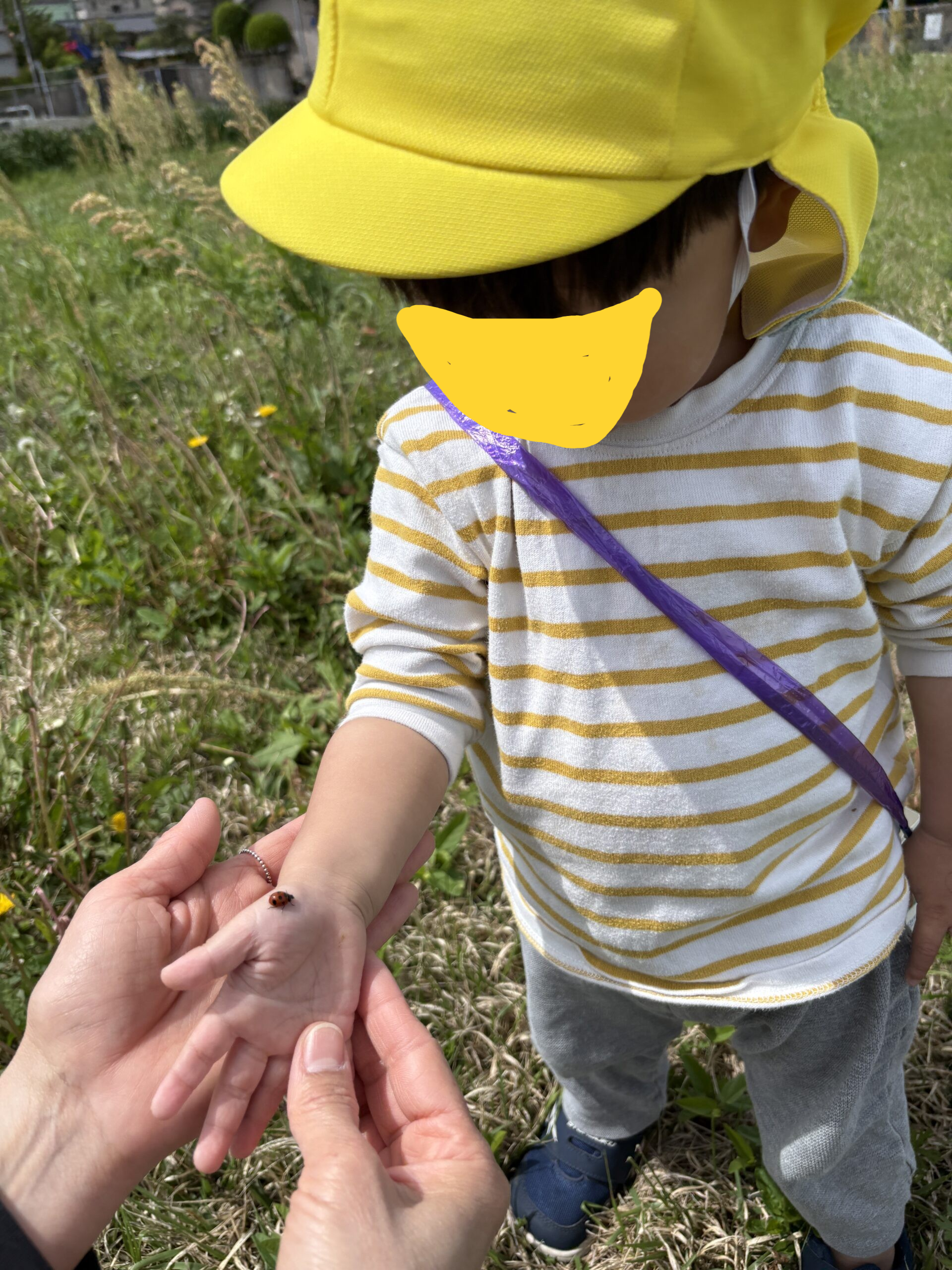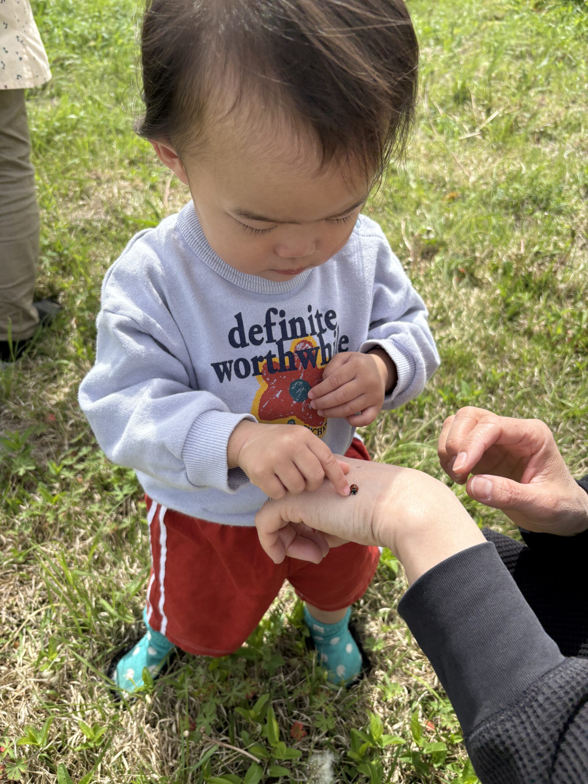 てんとう虫を触ってみます🐞
